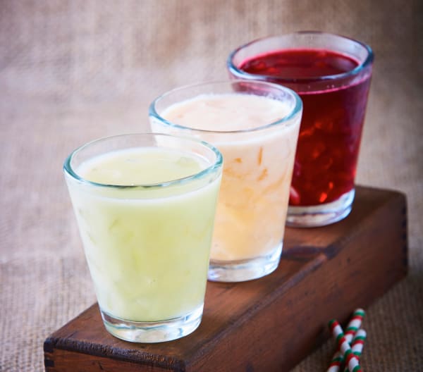 Cuele con ayuda del cestillo y vierta la horchata en una jarra con hielos.