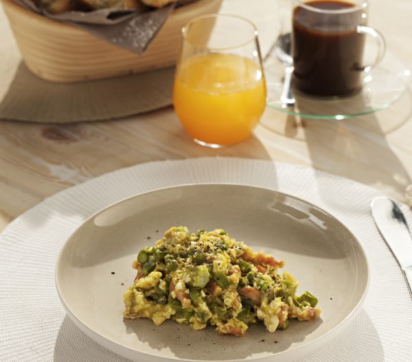 Como hacer huevos revueltos con espárragos y beicon con Thermomix®