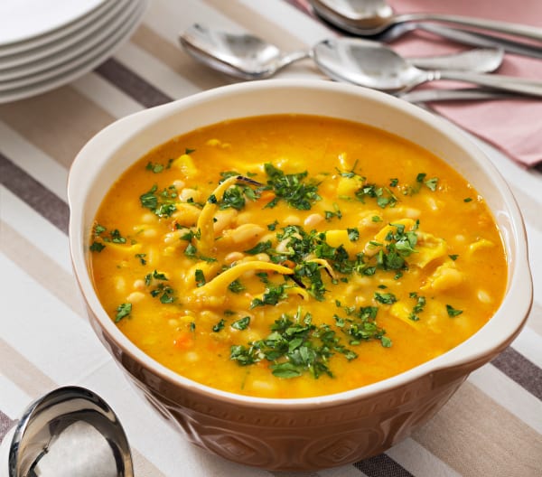 Agregue las judías blancas y programe 5 min/100°C/giro inverso/vel cuchara. Vierta en una sopera, espolvoree con el perejil picado y sirva.