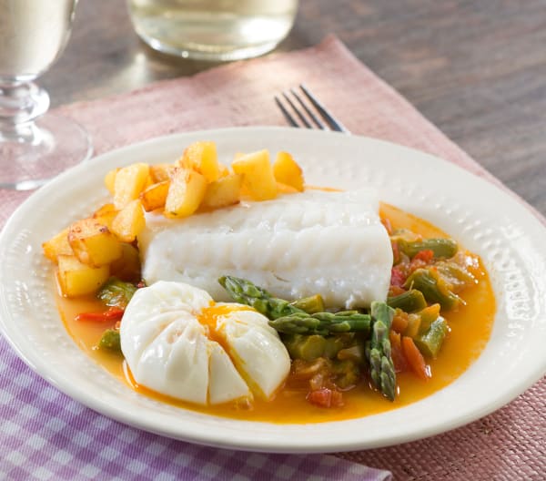Como hacer bacalao con fritada de espárragos, huevos y patatascon Thermomix