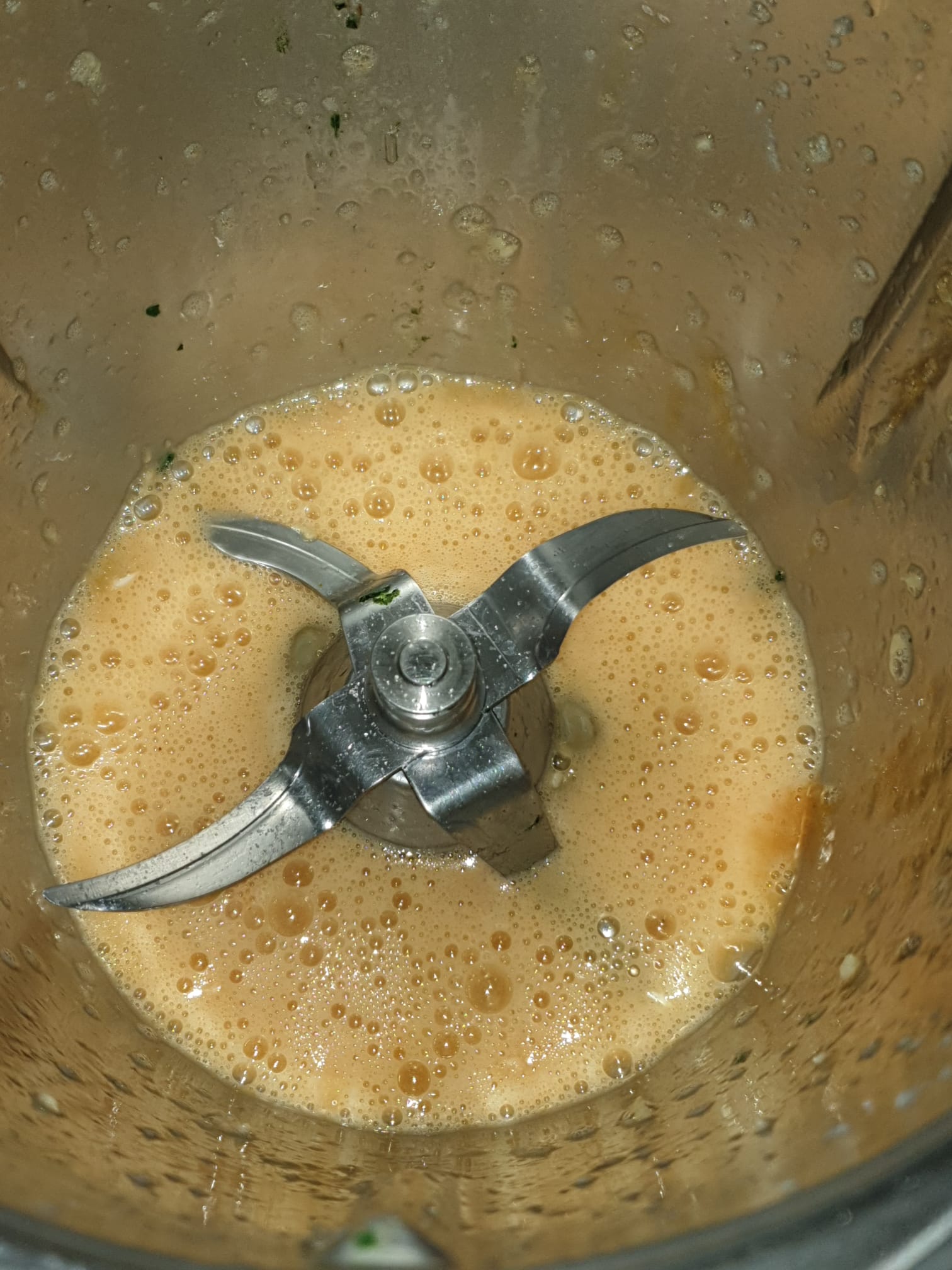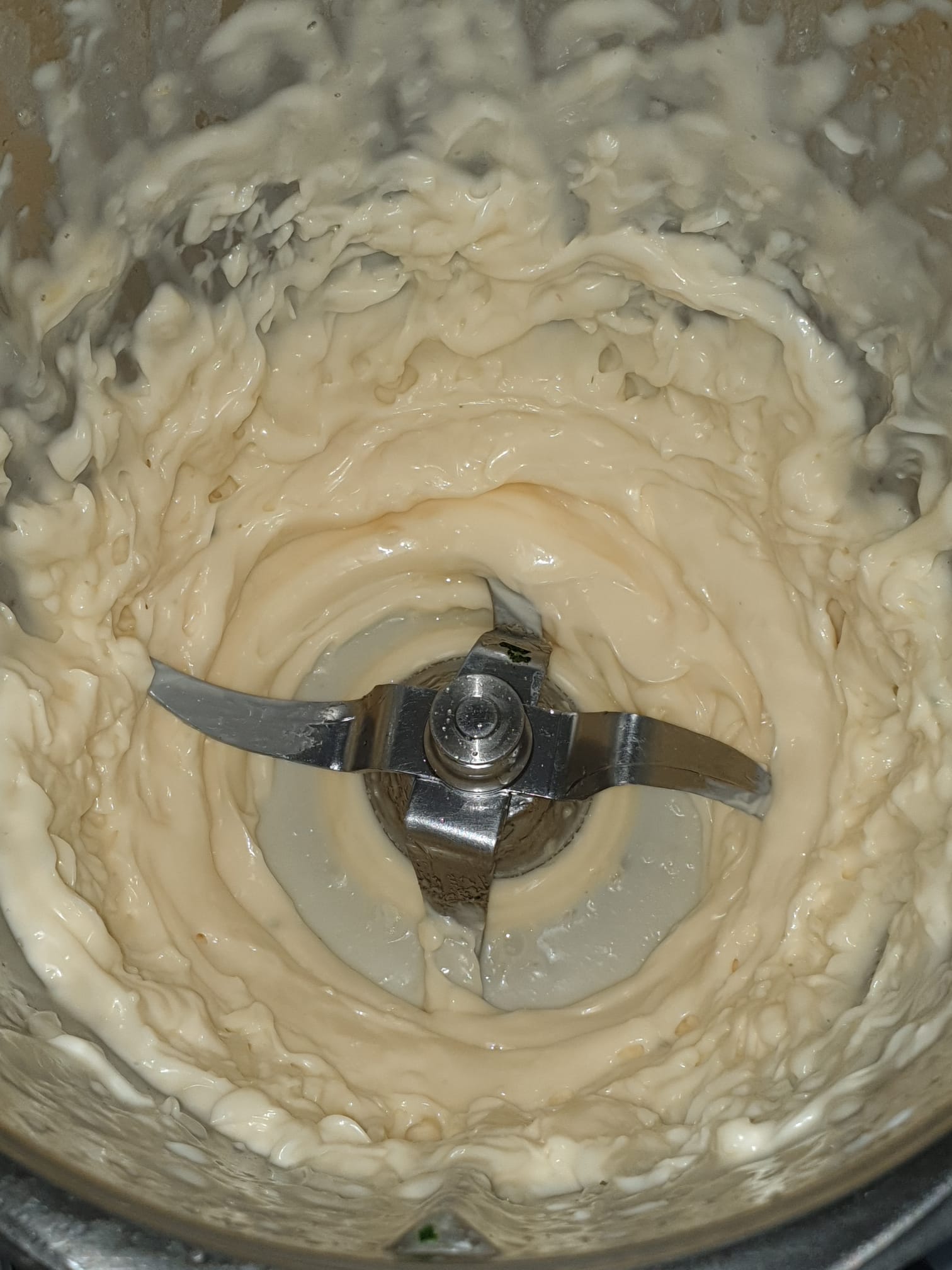 - Sin programar tiempo, programaremos el Thermomix a Velocidad 4, ir echando el aceite de girasol poco a poco por la tapa, con el cubilete puesto. Reserve en la nevera.