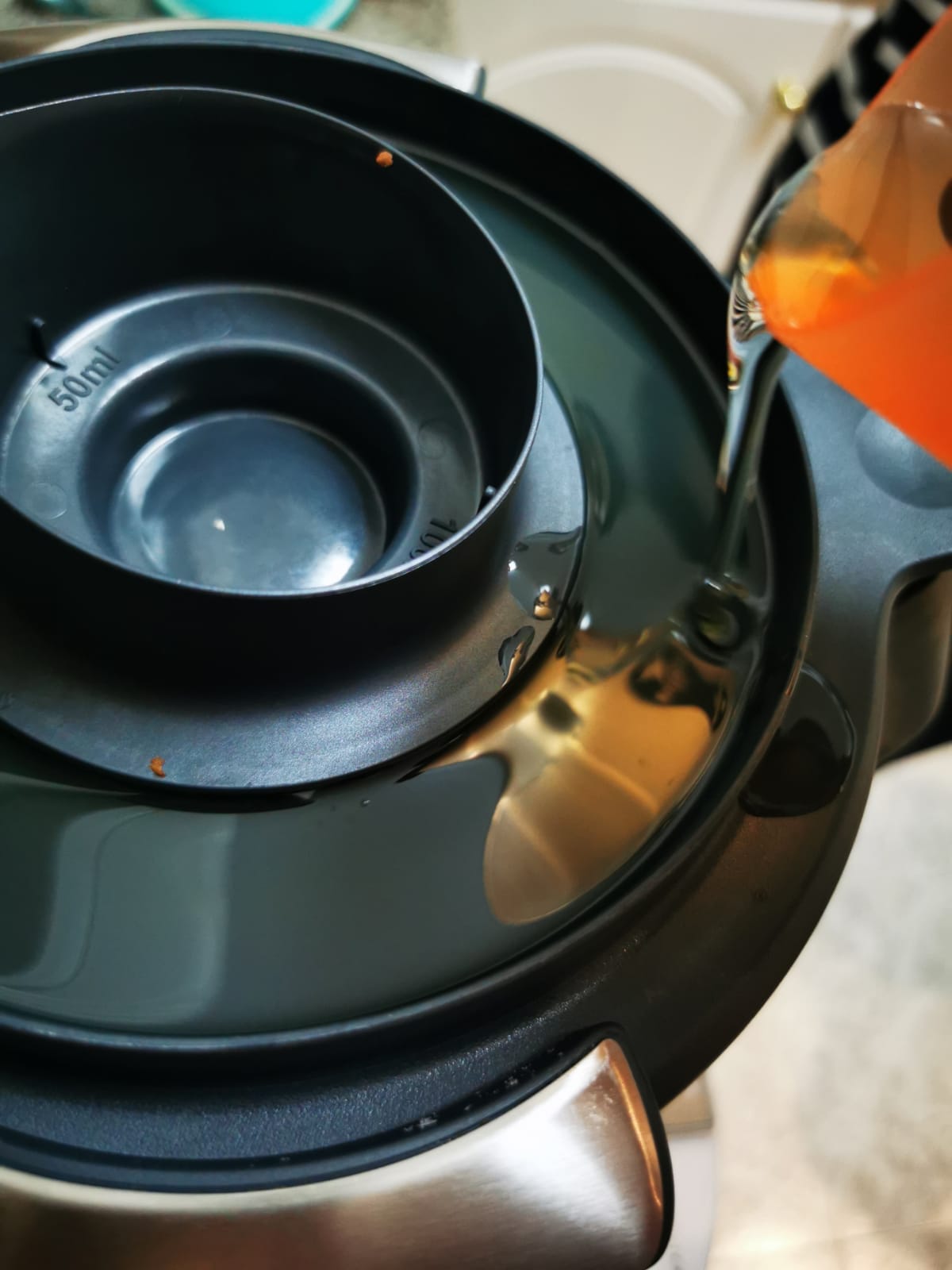 - Pese el aceite de girasol en una jarra. Reservar.