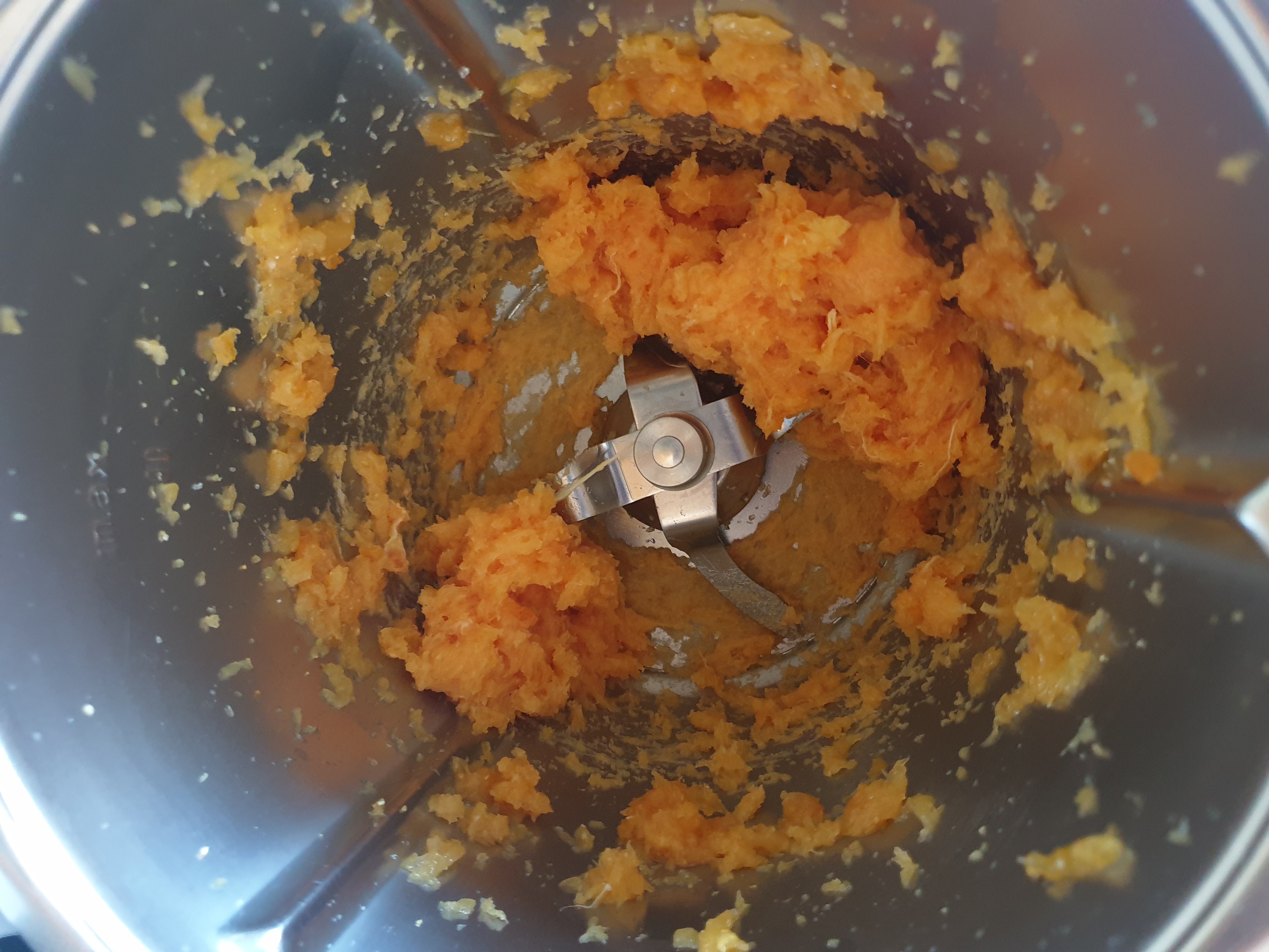 - Ponga en el vaso la pechuga, la sal y el ajo en polvo y pique 5 seg/vel 7