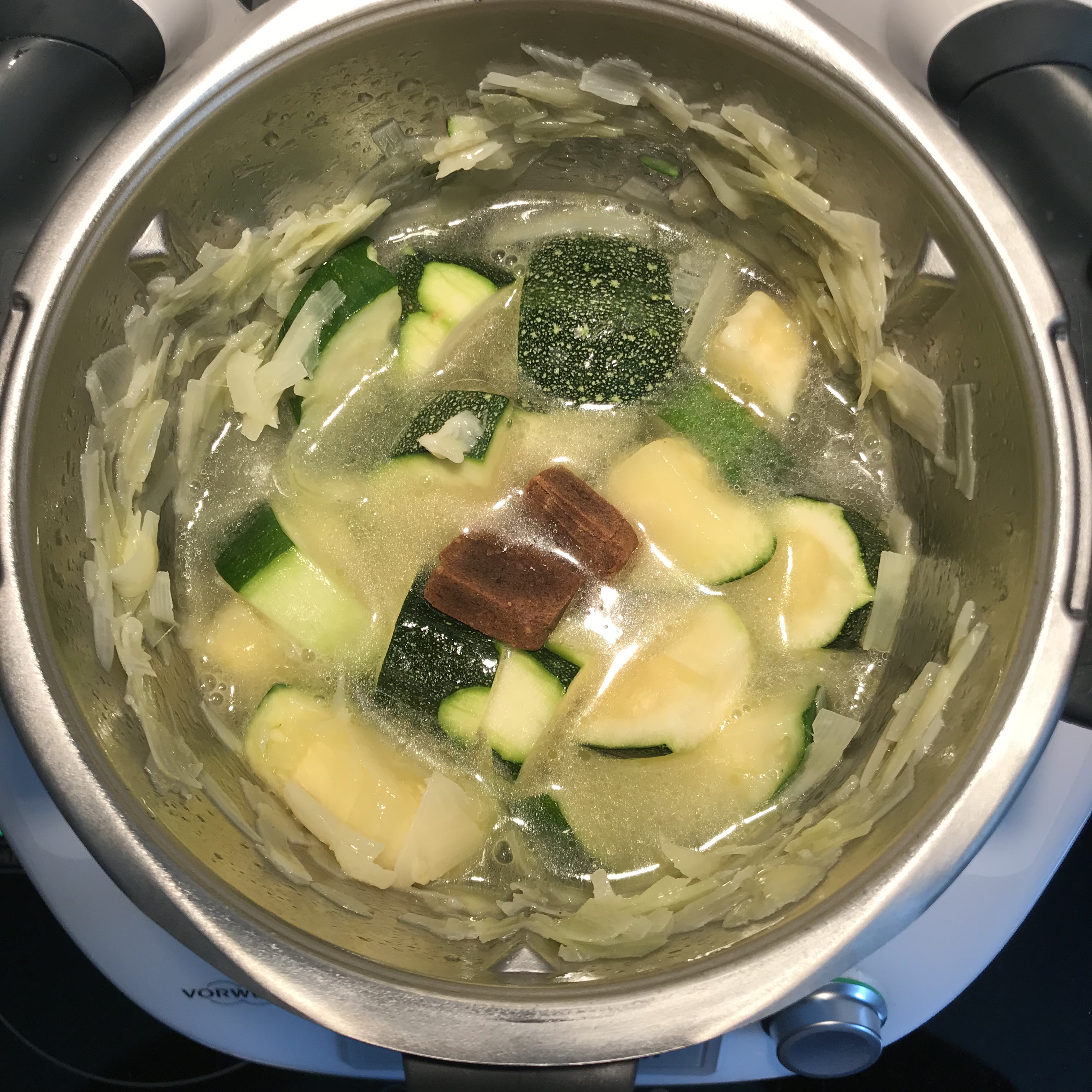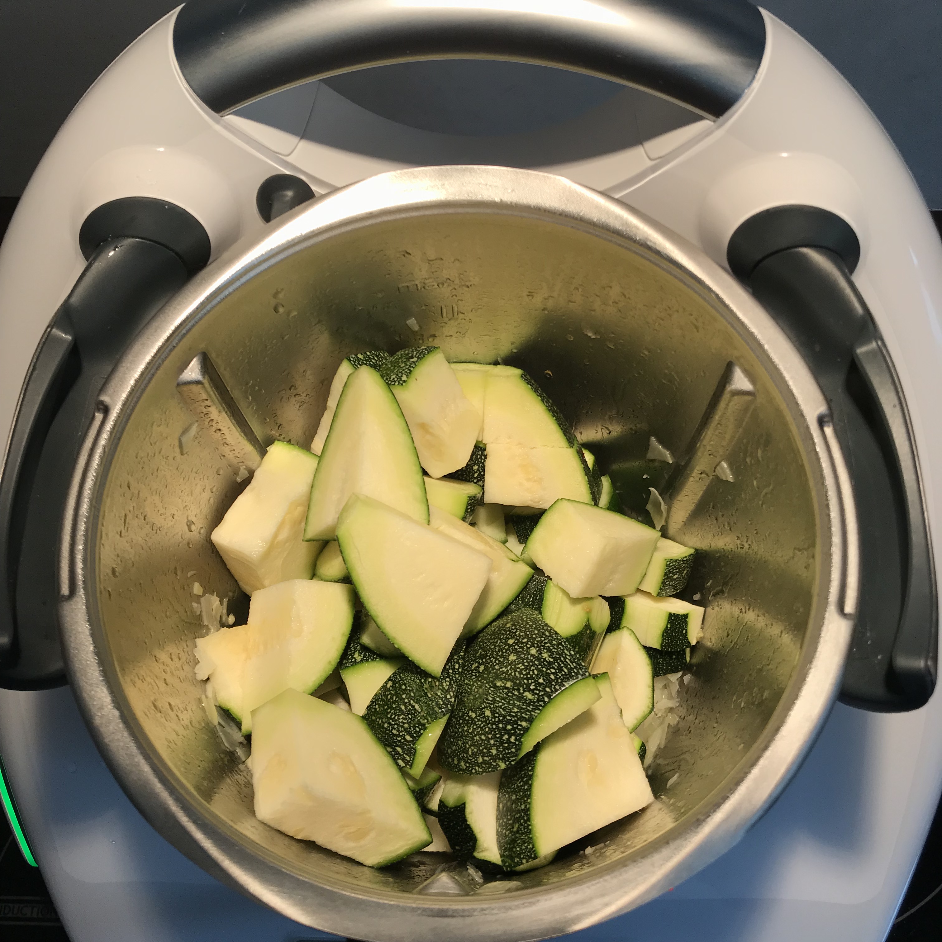 Sofria 6 min / 120ºC / vel 1 y Añada el calabacín.