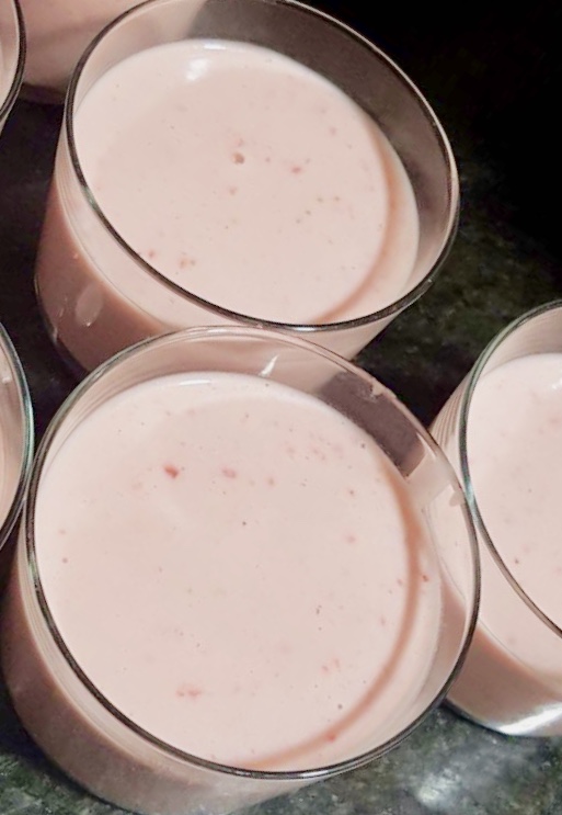 Posem les maduixes en el vas i triturem 15seg a vel10. Afegim l’aigua i la nata, 3min 90 vel1.