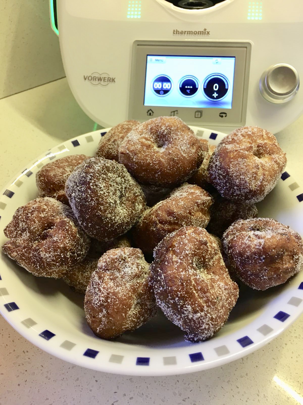 Havia sentit que amb el Thermomix es podia fer la massa, així que no vaig dubtar en fer-los. Vaig avisar l'àvia que m'ajudés a fregir-los... La Leo va quedar maravellada i em va dir "ai nena, si hagués tingut aquesta màquina a la meva època quantes coses que hagués fet!" així que ja en fa dos d'anys que els fem i no cal que us digui que queden boníssims!