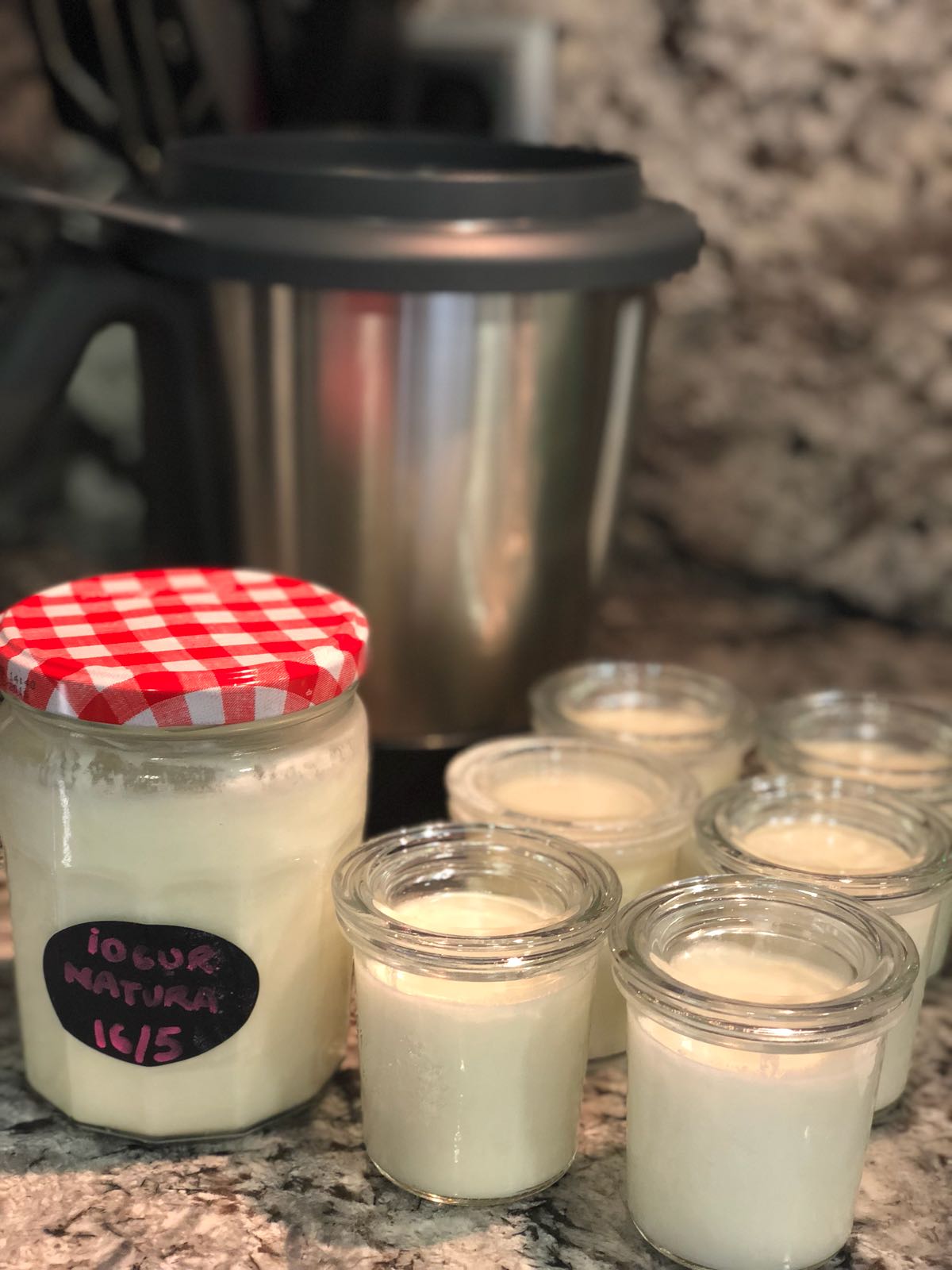 Es base en posar els ingredients dintre el vas ( girar el selector de velocitat que ens marca i esperar 8hores perquè fermenti). Un cop ens avisa, passats aquestes hores, abocar el iogurt a vasets de vidre i a la nevera!