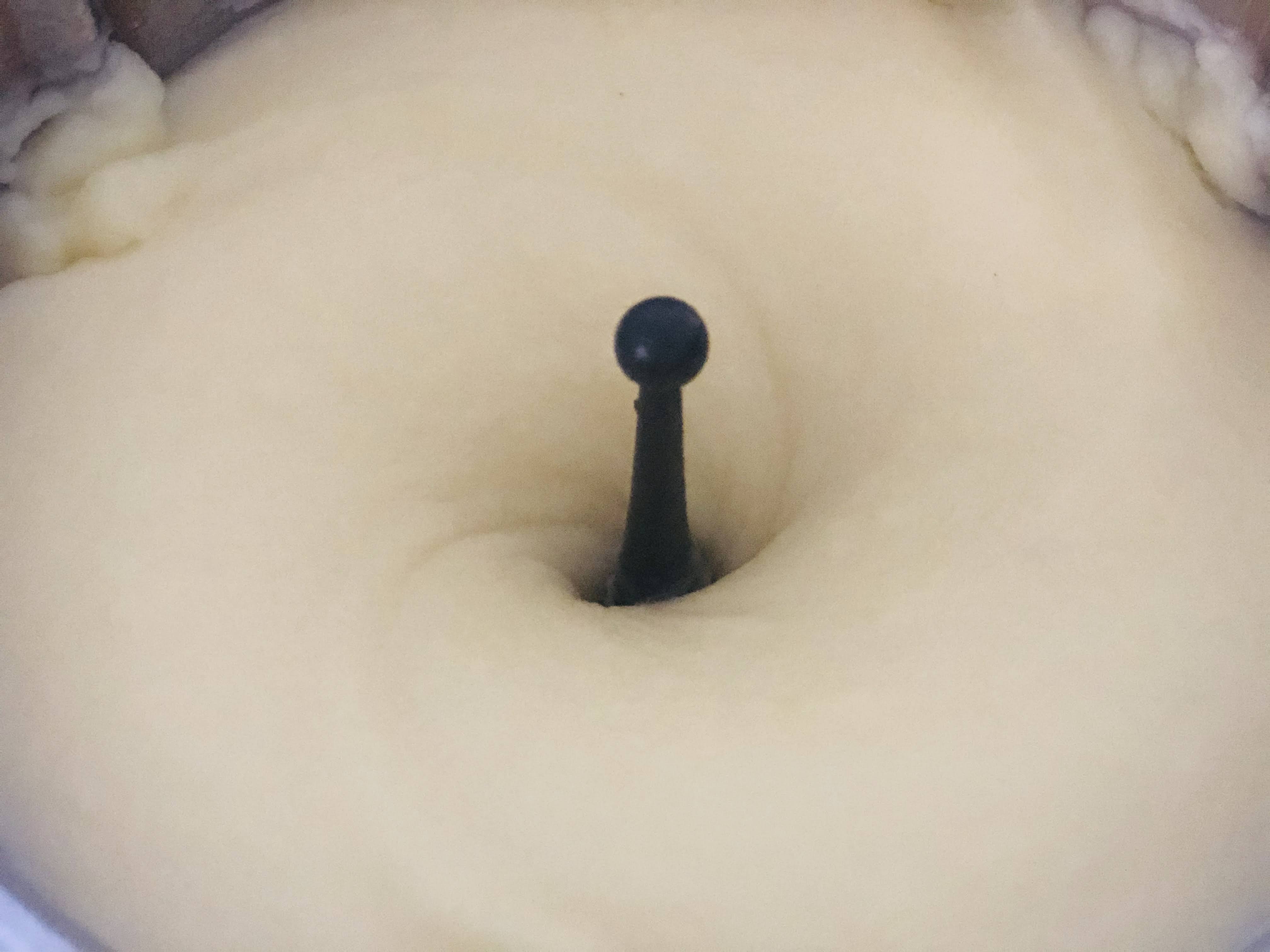 Coloque la mariposa en las cuchillas. Ponga en el vaso las patatas, la sal y la leche y, sin poner el cubilete, programe 30-35 min/95°C//vel 1 (ver sugerencia).
