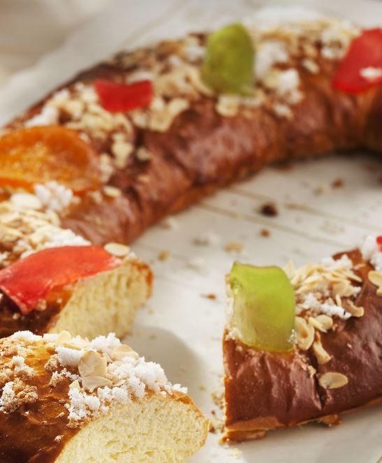 10- El posarem a la plata del forn, el pintarem amb l’ou batut i hi posarem les fruites confitades i el sucre humitejat.