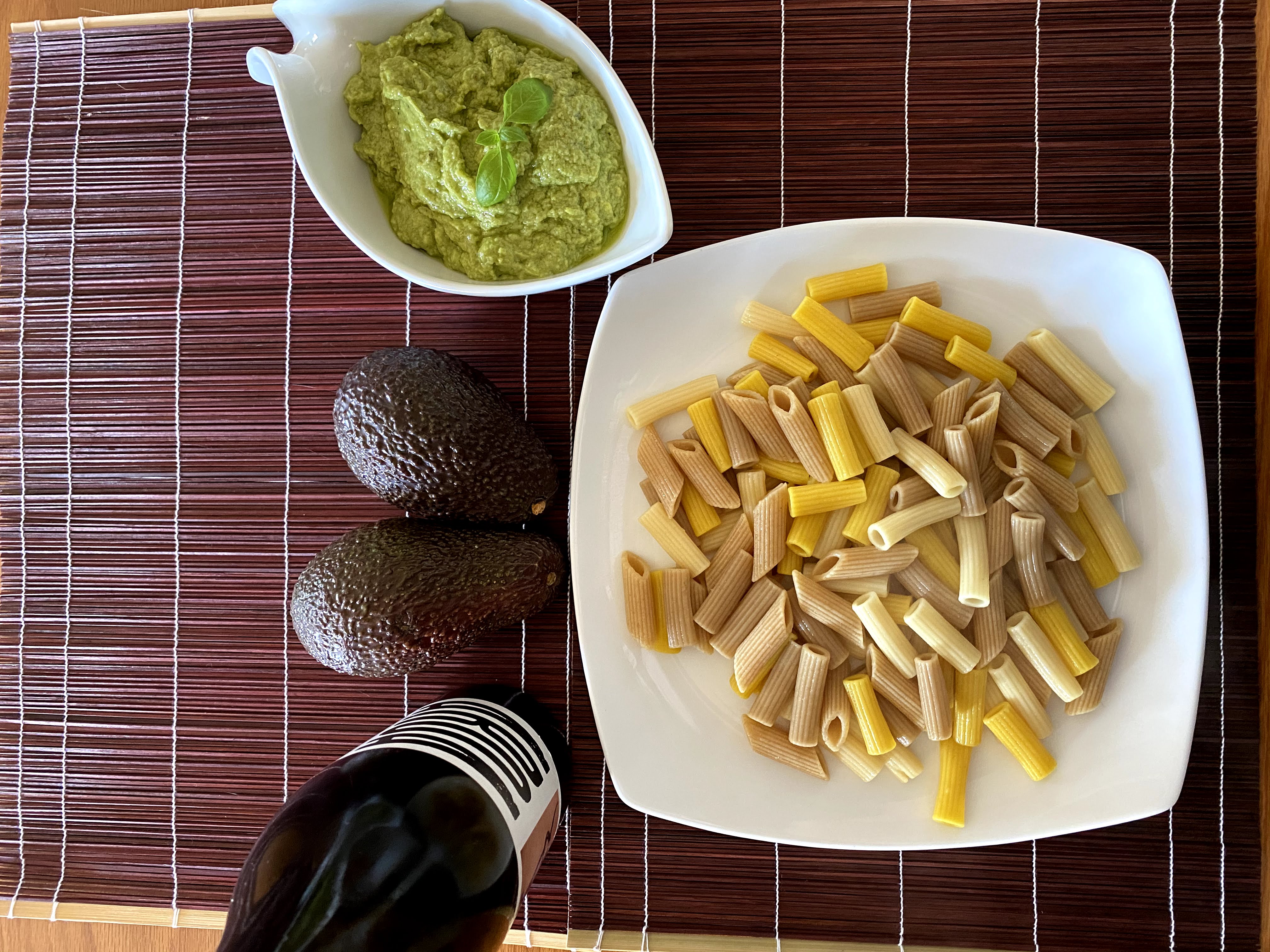 Pasta con pesto de aguacate y nueces