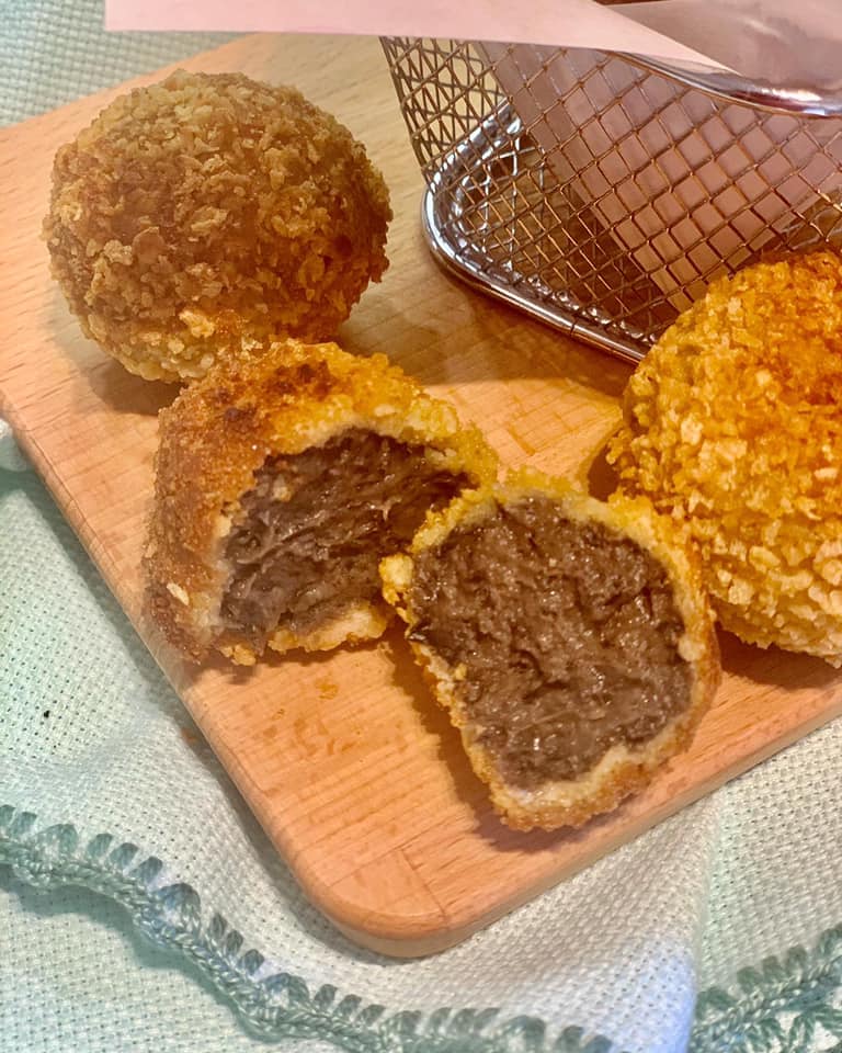 8️⃣. Fríalas en abundante aceite caliente y deje escurrir las croquetas sobre papel absorbente.