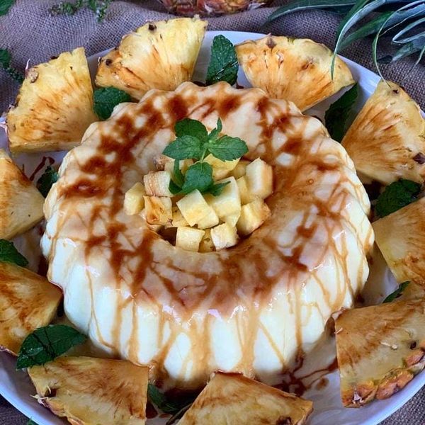 2. Añadir la nata montada, 10 segundos a velocidad 4 y verter la mezcla en el molde elegido, al que previamente se ha puesto el caramelo o praliné optativos. Se recomienda colar la mezcla con el cestillo ya que pueden quedar posibles restos de pulpa de la piña.